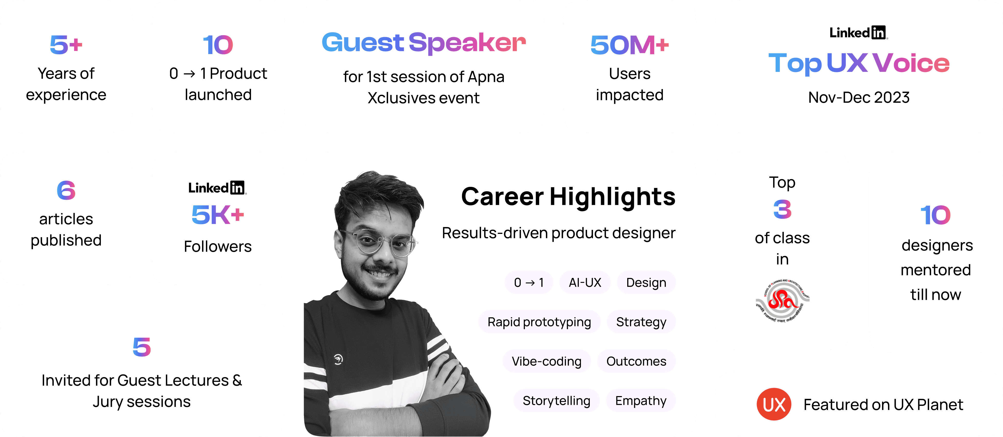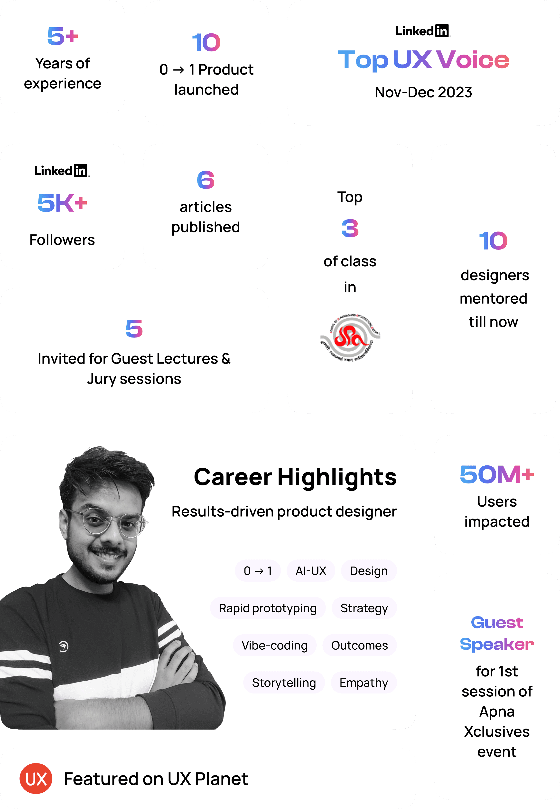In my last 5 yrs. of relevant industry exp, I've learnt a lot - from increasing retention metrics for B2C apps to solving complex data problems for B2B SaaS products.