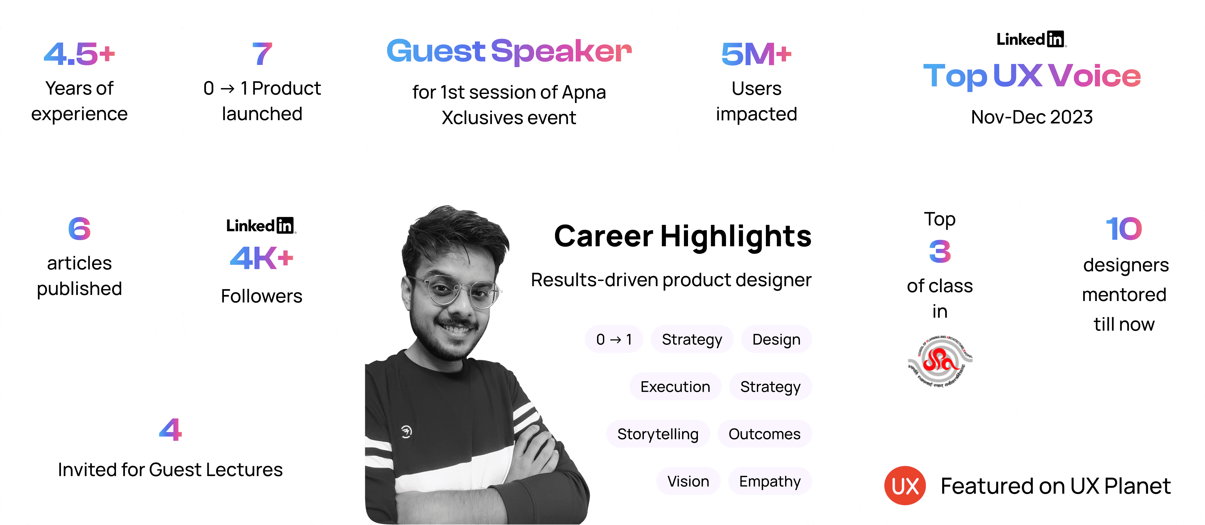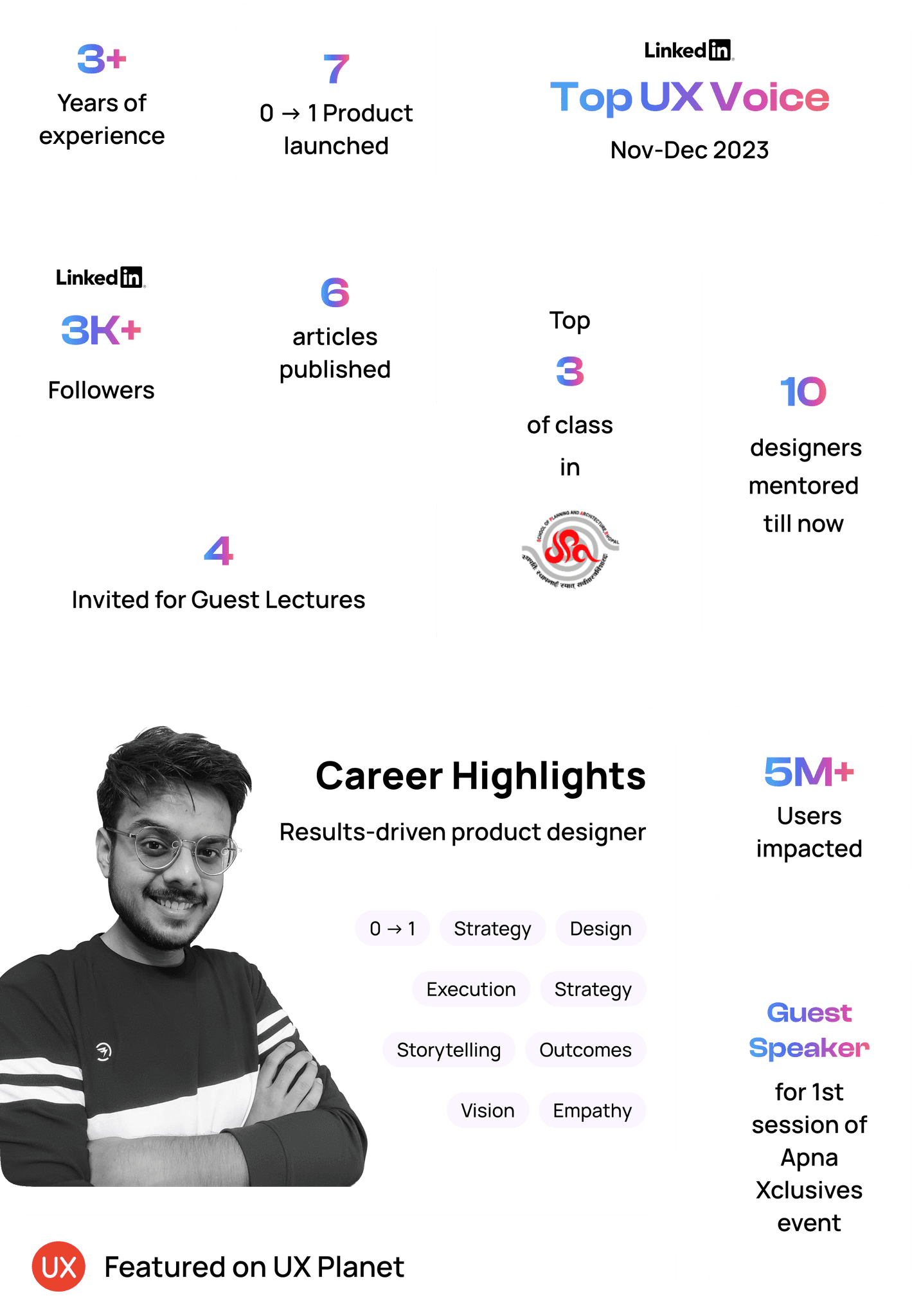 In my last 4.5 yrs. of relevant industry exp, I've learnt a lot - from increasing retention metrics for B2C apps to solving complex problems for B2B SaaS products.